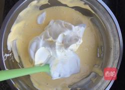 3.把三分之一的蛋白放入打散的蛋黄液里切拌均匀,注意不要搅拌,容易消泡