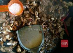 9.大火翻炒后加入少许料酒,少许醋,少许蚝油和鸡汁,两三滴老抽翻炒。(这里加的东西多,可以把这类材料倒入碗里调成汁倒入,更便捷。)
