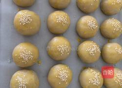 3.抱入筹备好的馅儿料,上面涮蛋黄,沙芝麻入烤箱180 25分钟 上下火