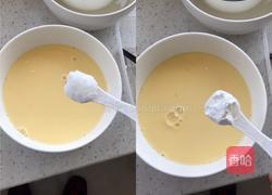 8.蛋液糊取适当(饭勺量) 平底锅微热倒入,转动平底锅至均匀。周围变白鼓起即可拿下平底锅 放置凉的湿抹布上 降温 拿下饼皮