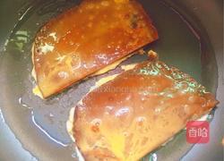 5.夹入粘上鸡蛋液的年糕,小火煎制