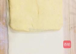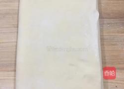6.折完三将来,擀长,再折四,折完四放冰箱稍微冻一下,不要冻硬。