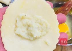 9.放上馅,周围刷上蛋液,或喷水也行,(喷水刷蛋液是为了让它粘在一块如此烤的时候馅才困难流出来)