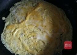 4.留底油,鸡蛋打散,倒入摊片