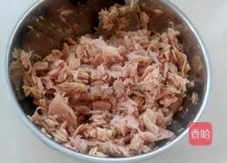 4.金枪鱼罐头用汤匙捣碎。
