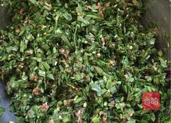 4.韭菜切小拌入肉馅,搅拌均匀;