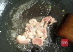 3.油热了下猪肉丁,翻炒