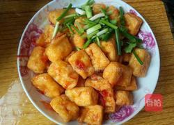 6.根据个人口味,喜欢吃软点的豆腐炸就放多点水煮久点,喜欢吃硬点的豆腐炸就放少点水,煮的时间短点。装盘,撒葱花