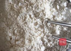 5.倒入80克面粉,先用筷子搅至无干粉状