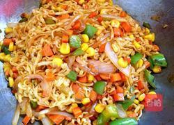 7.倒入煮好的便捷面用筷子搅拌开,再放适当的调味粉翻炒均匀即可