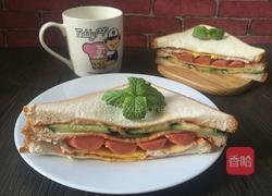 6.第二片面包片涂抹番茄酱加入火腿(火腿肠)