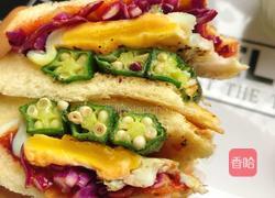 5.烤盘加少许油打入鸡蛋,摆上秋葵