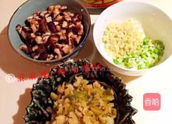 3.辅料筹备:香菇洗净切成丁、榨菜洗净切成丁、葱姜切丁备用