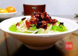 7.捞面装入面碗,然后浇上一勺汤和自己喜欢的肉酱,就能开吃了。