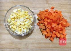 2.洗好的胡萝卜切粒,玉米取粒备用
