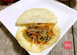 1.面粉和盐混匀,然后慢慢加入热水,用筷子搅成无干粉状。然后待不烫手后和成光滑的面团,盖上保鲜膜或湿布,醒15分钟。再揉一次,然后继续醒15分钟。