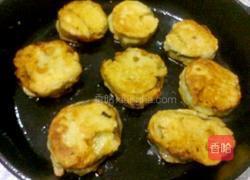 7.平底锅烧热到油,把裹了面糊的茄子逐个放入
