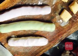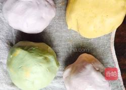 2.1.倒出紫薯水 分成三分 一碗加碱粉成绿色 一碗滴几滴柠檬水 依据自己对颜色需要适当 分别加汤圆粉 筹备和面2.南瓜直接加汤圆粉 筹备和面3.和面是重点 假如面太干 加一点水