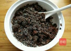 5.红糖和黑芝麻粉拌匀,黑芝麻粉,也可以换成其他粉。如面粉,花生粉。