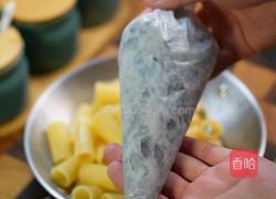 3.将虾滑挤进通心粉。