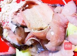 9.加入开水,小火煮50分钟,再把腌制好的鱼片依次放入汤锅中,大火煮开,调入白糖和鸡精关火