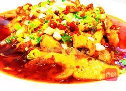 11.撒上葱、姜、蒜、小红辣椒、干辣椒、香菜末和干花椒。起油锅把油烧开浇在鱼身上即可。
