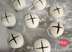 6.用刀子在上面划十字,要划透,能看到菠萝馅就好,划好后静待发酵,发酵时间依据温度高低,天气好温度高发酵的快,一个小时左右就能发酵好