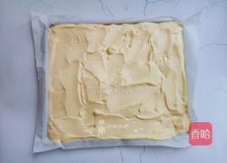 9.将拌匀的蛋糕糊装入烤盘中,将表面尽可能抹平。